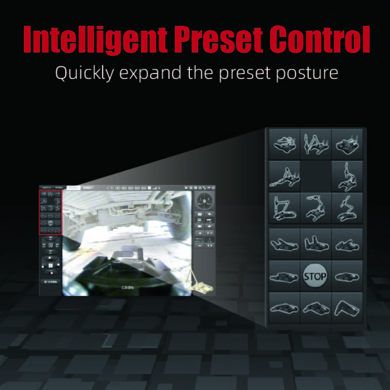 ด้วย "การควบคุมท่าทางที่ตั้งไว้ล่วงหน้าอัจฉริยะสำหรับงานทั่วไป" หุ่นยนต์สามารถ "เข้าถึงตำแหน่งที่ตั้งไว้ล่วงหน้าได้โดยอัตโนมัติด้วยคลิกเดียว" ตามความต้องการของผู้ใช้ คุณสมบัตินี้ช่วยลดปริมาณการทำงานด้วยตนเองที่จำเป็นในสถานที่จริงได้อย่างมาก ทำหน้าที่เป็นผู้ช่วยที่มีประสิทธิภาพสำหรับผู้ปฏิบัติงานแนวหน้า และเพิ่มความน่าเชื่อถือและความปลอดภัยของงานกำจัดระเบิด