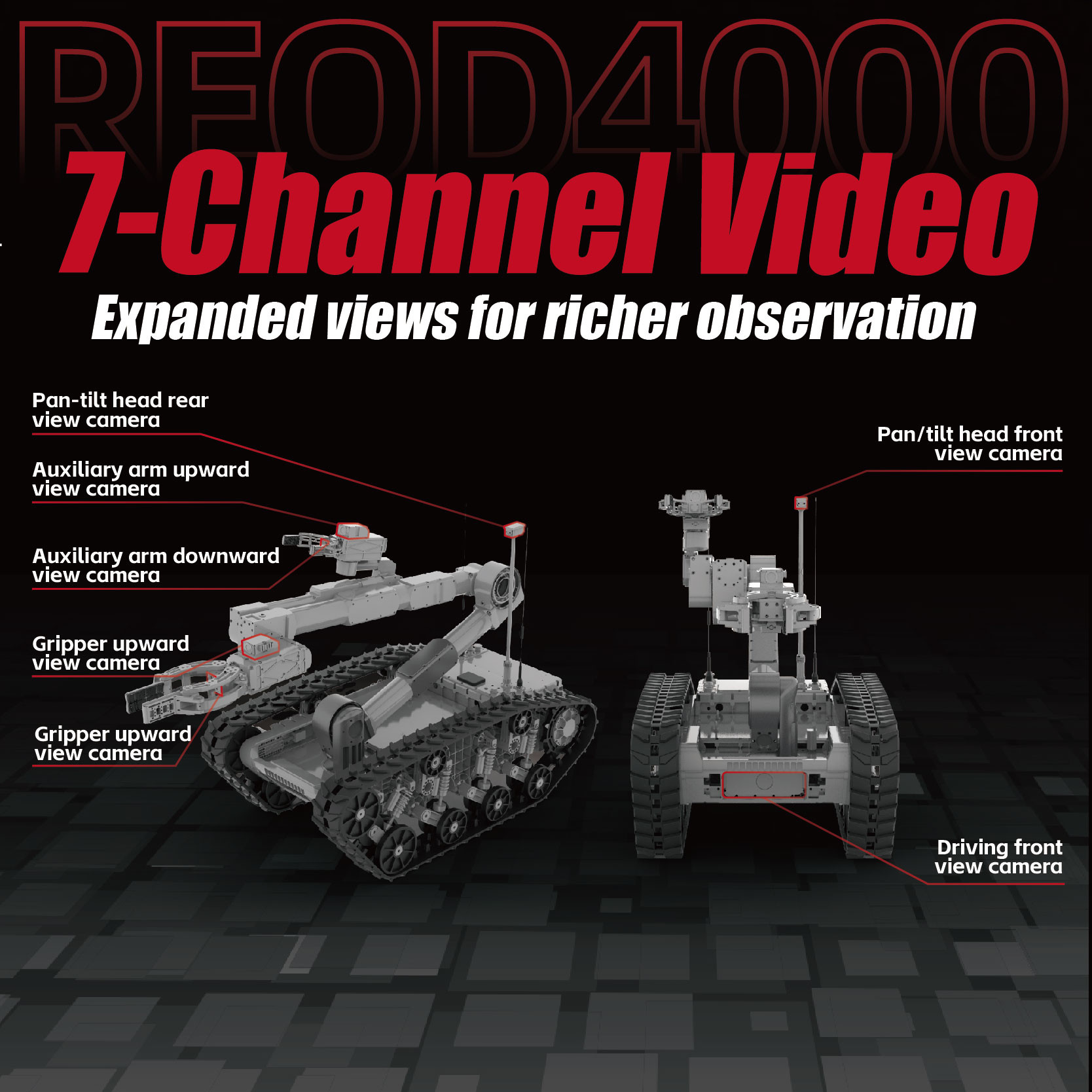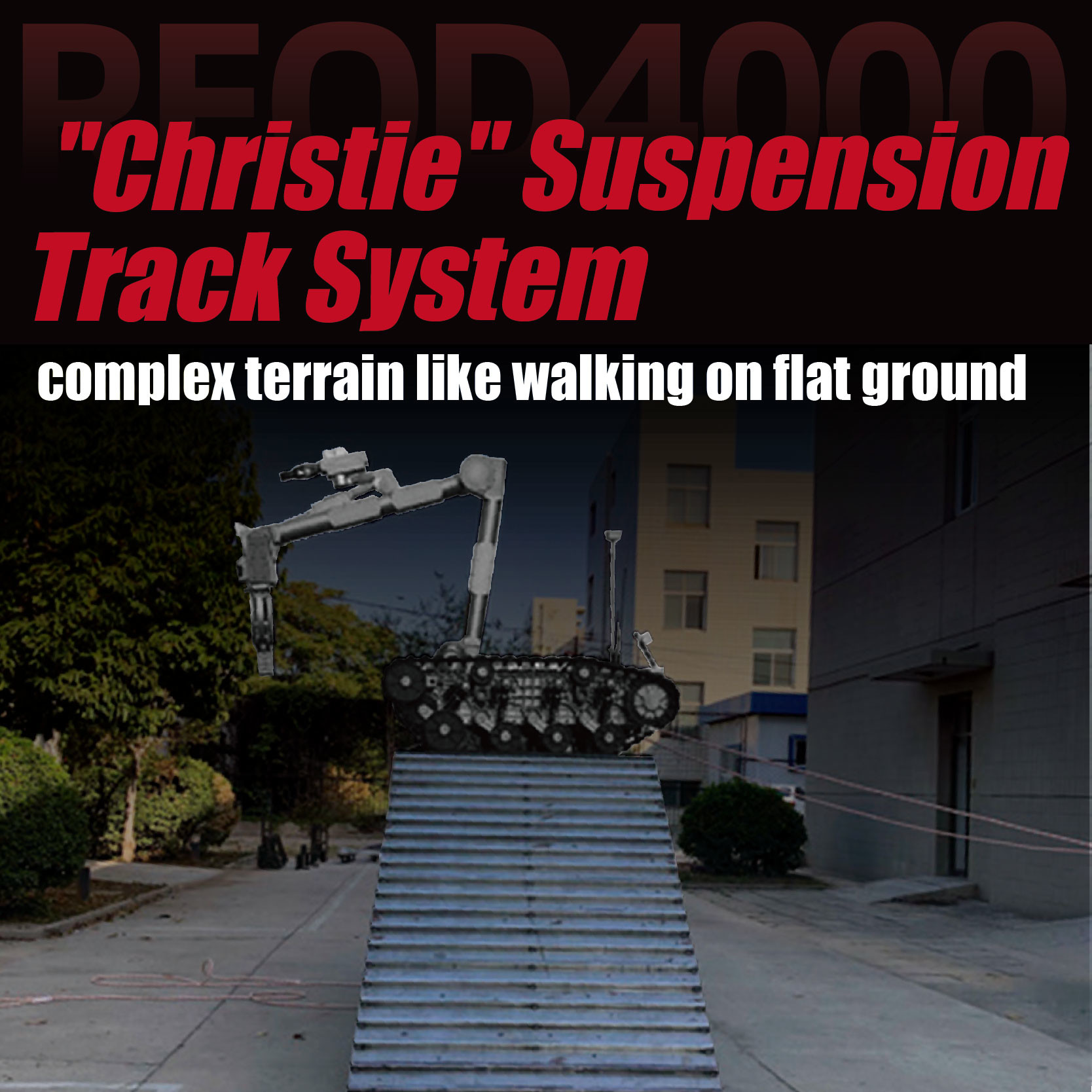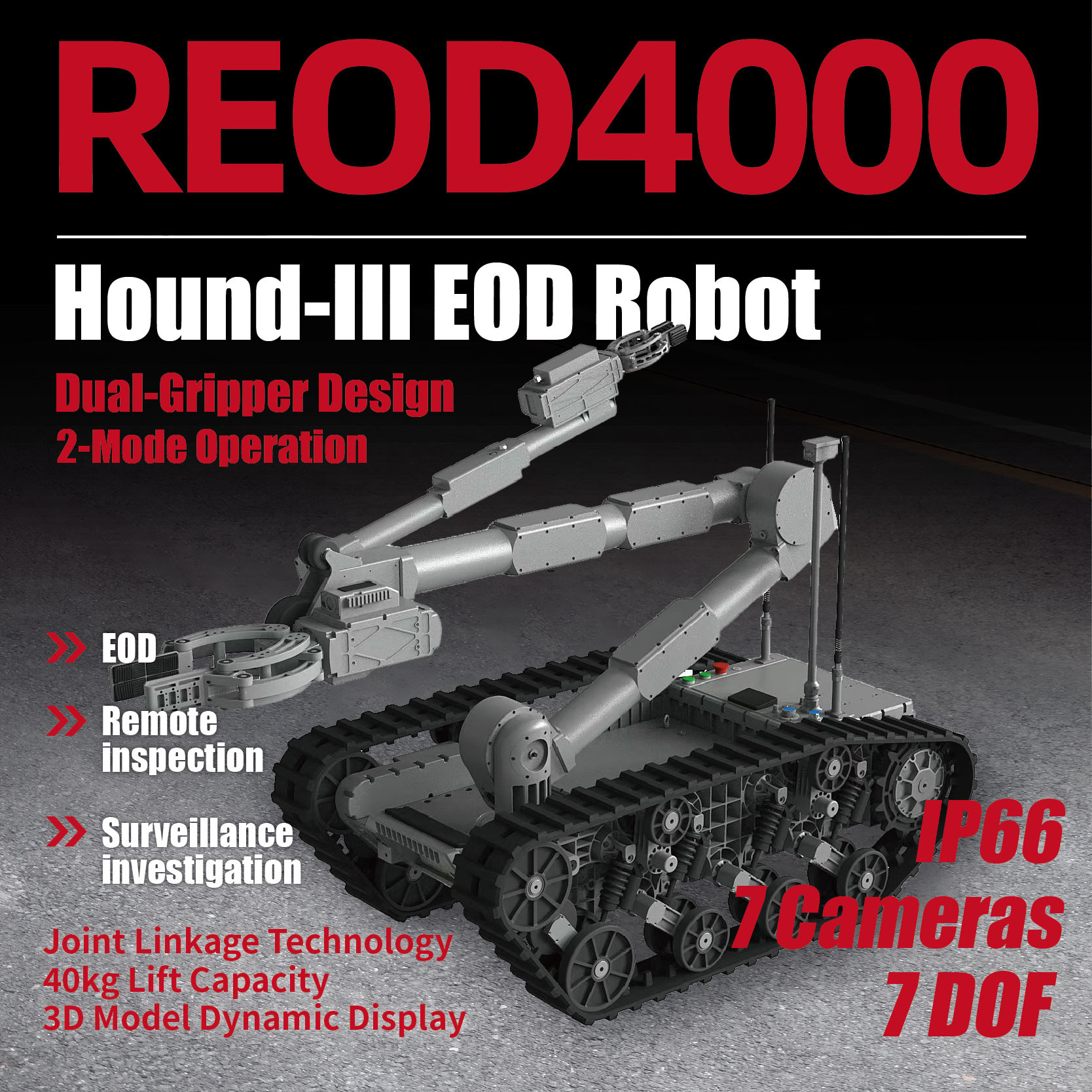 REOD4000 มีขนาด 1600 มม. × 850 มม. × 1300 มม. (เมื่อจัดเก็บเต็มที่) และมีน้ำหนัก ≤350 กก. ซึ่งรับประกันทั้งความสามารถและความคล่องตัว มีความเร็วสูงสุด ≥5 ม./วินาที การกวาดสิ่งกีดขวาง ≥400 มม. และความสามารถในการไต่ ≥45° ซึ่งให้ความคล่องตัวและความสามารถในการปรับตัวที่เหนือกว่าในภูมิประเทศต่างๆ REOD4000 ติดตั้งระบบการทำงานระยะไกล สามารถเข้าใกล้พื้นที่อันตราย ตรวจสอบอันตรายที่อาจเกิดขึ้น และดำเนินการกำจัดได้อย่างมีประสิทธิภาพ ลดความเสี่ยงต่อบุคลากร
